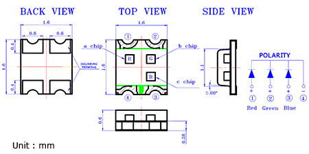 L-C19F1RGBCT – 1.6×1.6×0.6mm Surface Mount Device LED (0606)